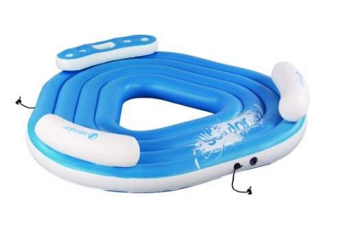 The Sevylor Inflatable Party Platform is just what you need for your party on the water! Measuring 84 Inchx84 Inch, the Party Platform holds 3-4 people comfortably; it Feets durably constructed of 16-gauge vinyl (with 12-gauge vinyl pillows). Bring your snacks and drinks with you -- the Platform features a handy snack tray and four built-in cupholders. You Feetll float in comfort, thanks to the two inflatable pillows. The Party Platform inflates and deflates quickly, thanks to Sevylor Feets Double Lock Valve, and carries the Air Tight Guarantee -- so it Feets guaranteed not to leak. The Park F